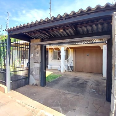 03 dormitórios + 01 suíte, estar, jantar e cozinha, banheiro social, área de serviço, cozinha campeira e garagem para dois carros. Na parte dos fundos possui área com churrasqueira, banheiro adicional e depósito.